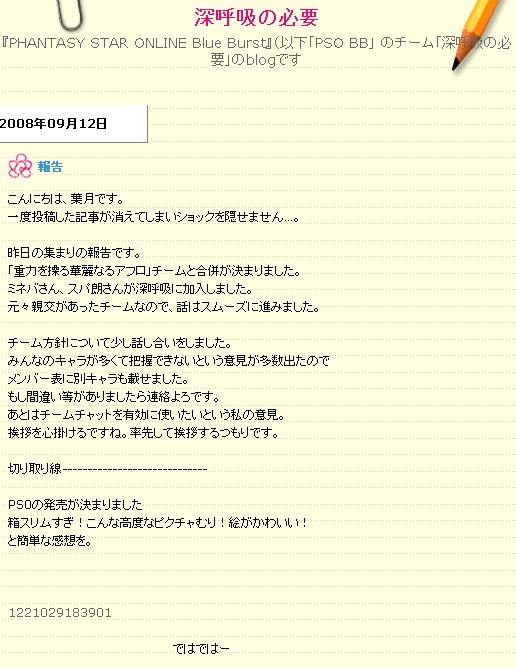 それに、今回の『PHANTASY STAR 0(ZERO)』を例に取りますと、この情報が掲載されました週間『ファミ通』の発売日が9月12日。で、こちらの『PSO-BB』公式HPを見てみますと…。