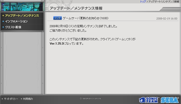 この時の"お知らせ"、最初の内容は以下のようになっておりました。