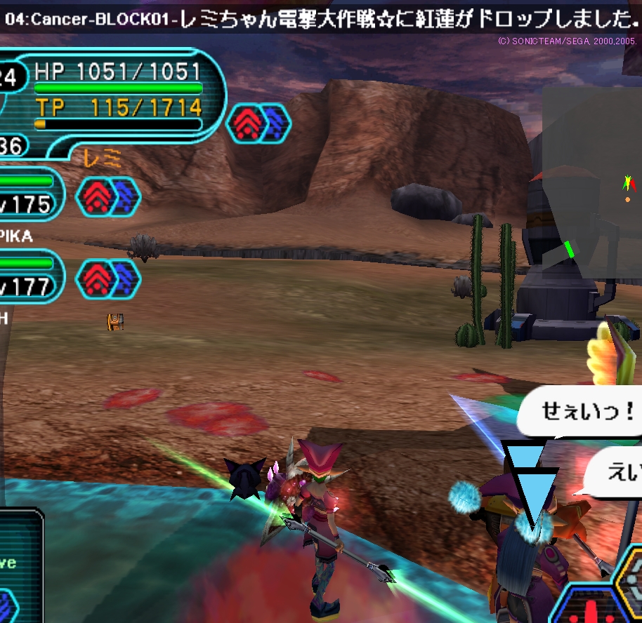 そう、既にこの時点で妖しいんですけど、『PSO-BB』にログイン致しましてPLAYしてみましたら、所々に改変が加えられているとおぼしき現象が起こりました。