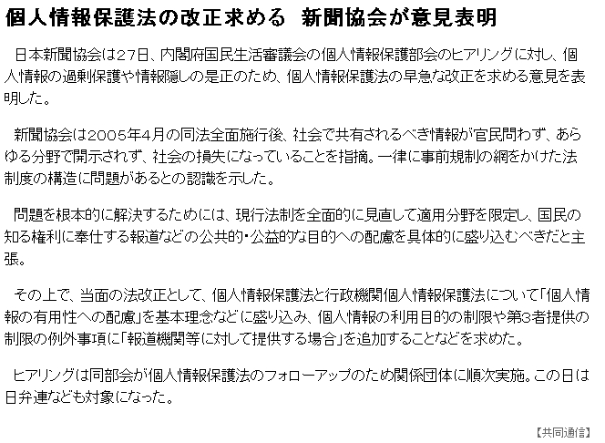 個人情報保護法の改正求める 新聞協会が意見表明(47NEWS)