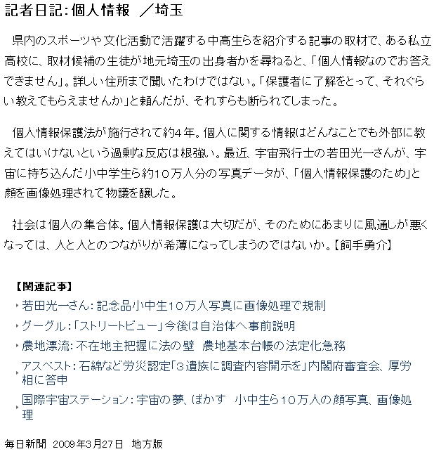 記者日記:個人情報/埼玉(毎日"変態".jp)