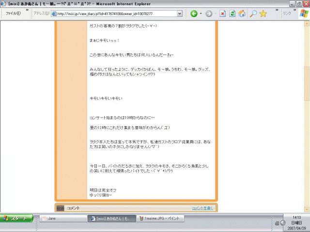 ※こちらが問題となりました『mixi』日記の"証拠"画像です。
